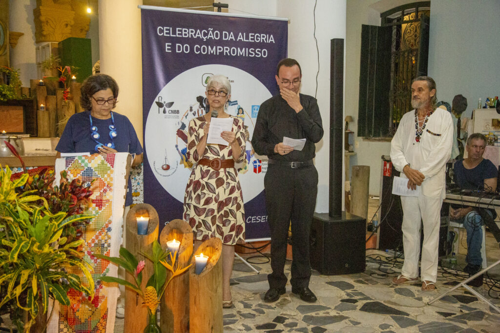 The inter-religious moment was opened by Pastor Renato Küntzer, from the Anglican Episcopal Church of Brazil (Igreja Episcopal Anglicana do Brasil: IEAB) and CESE’s Second Treasurer, in a prayer for respect for diversity. The African-origin religions were represented by Mother Jaciara de Oxum, Iyá Márcia de Ogum e Egbon d’Osun from Ilê Axé Ofá Omi Layó, Ana Gualberto, Director of Koinonia – Ecumenical Presence and Service. A long-term partner of CESE, Mother Jaciara congratulated the organization for its impact on the communities.