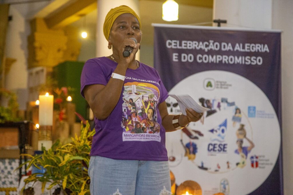 Another representative at the celebration of the organization’s historic partnerships was Marizelha Lopes, quilombola and fisherwoman from Maré Island, member of the National Coalition of Fisherwomen (Articulação Nacional das Pescadoras: ANP). “This seed is not any seed. It is an organic seed, a creole seed, it is something we pass from community to community. This seed, which is CESE, is the news that those in this organization remind us there are people who need to be welcomed in. This seed has multiplied and brought so much fruit to the resistance.”
