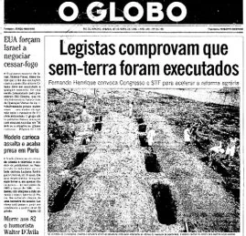 Impunity, however, was another mark of the massacre. Despite the participation of hundreds of police officers and the consent of Almir Gabriel (Brazilian Social Democracy Party – Partido da Social Democracia Brasileira: PSDB), state governor at the time, and the Pará State Security Secretary, Paulo Sette Câmara, who authorized the use of police force, only two people were found guilty: Colonel Mário Colares Pantoja, who received a prison sentence of 228 years and Major José Maria Pereira Oliveria, who was condemned to 154 years. By 2012, however, they had both appealed while still free.
