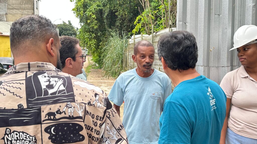 Um dos grupos visitou a Cooperativa de Reciclagem e Serviços do Estado da Bahia (COOPERES), criada em 2007 no Subúrbio Ferroviário da capital baiana. A cooperativa tem como missão gerar trabalho e renda para catadoras e catadores, contribuindo com a inclusão social e a conservação ambiental a partir da gestão popular de resíduos.
