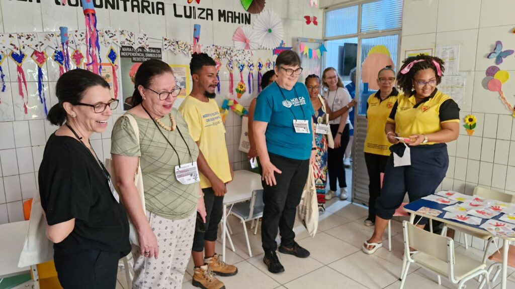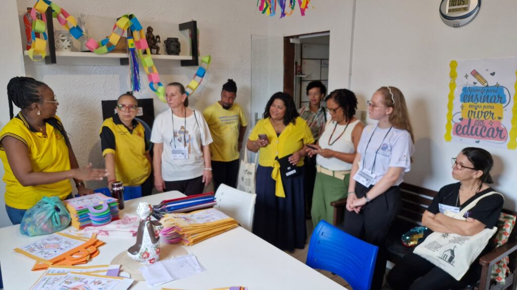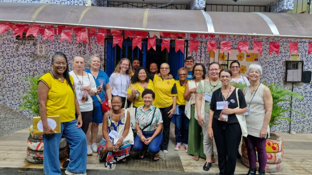 Outro grupo visitou a Rede CAMMPI (Comissão de Articulação e Mobilização dos Moradores da Península de Itapagipe), uma articulação comunitária que reúne movimentos sociais, coletivos e grupos populares da região. Parceira histórica da CESE, a Rede é reconhecida como um espaço legitimado pela comunidade para construir e gerir sua própria agenda territorial, com atuação destacada na defesa de direitos relacionados à educação infantil, cultura, arte-educação, meio ambiente, conservação ambiental e geração de renda.