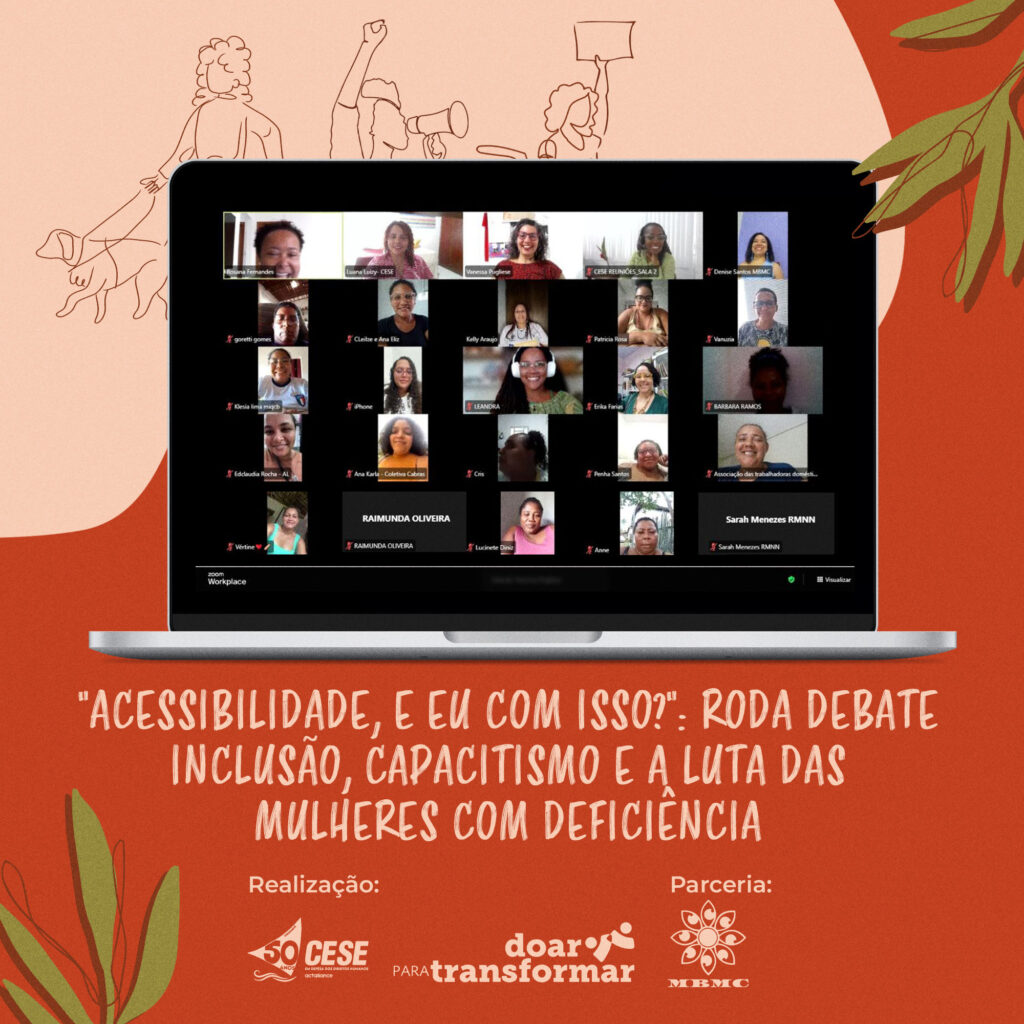 Na tarde da última quarta-feira (14), mulheres de diferentes organizações populares participaram da roda de conversa virtual: “Acessibilidade, e eu com isso?”, promovida pela CESE e o Movimento Brasileiro de Mulheres Cegas e com Baixa Visão (MBMC), como parte do programa Doar para Transformar. O encontro integrou a Comunidade de Prática do programa e se consolidou como um espaço de aprendizado coletivo, trocas sensíveis e fortalecimento da luta das mulheres com deficiência.