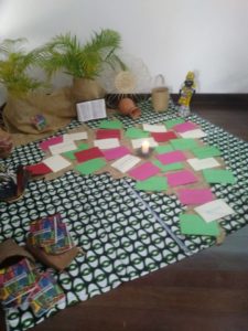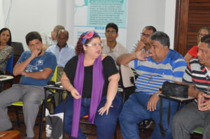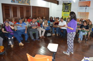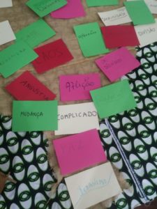 Iniciamos a manhã de estudos com uma palavra de acolhimento das Reverendas Sônia Mota e Bianca Daébs. Em seguida foi realizada uma dinâmica de apresentação e sensibilização, falando sobre os nossos sentimentos sobre o Brasil hoje. As palavras que mais apareceram neste momento foram: angústia, opressão, divisão, indignação, intolerância e violência. Em seguida, cantamos juntas “Se calarem a voz dos profetas, as pedras clamarão, se fecharem os poucos caminhos, mil trilhas nascerão, muito tempo não dura a verdade, nessas margens estreitas demais, Deus criou o infinito pra vida ser sempre mais…”