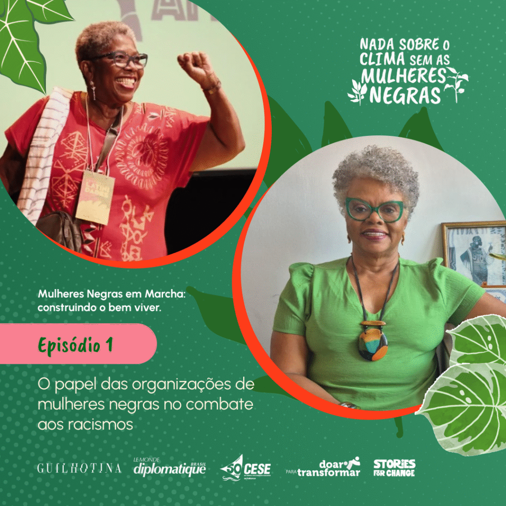 A CESE – Coordenadoria Ecumênica de Serviço lança, neste mês de novembro, a websérie de podcasts “Mulheres Negras em Marcha: construindo o bem viver”, produzida em parceria com o Guilhotina, podcast do Le Monde Diplomatique Brasil. A iniciativa integra a campanha “Nada sobre o Clima sem as Mulheres Negras”, realizada no âmbito do Programa Doar para Transformar/Giving for Change.