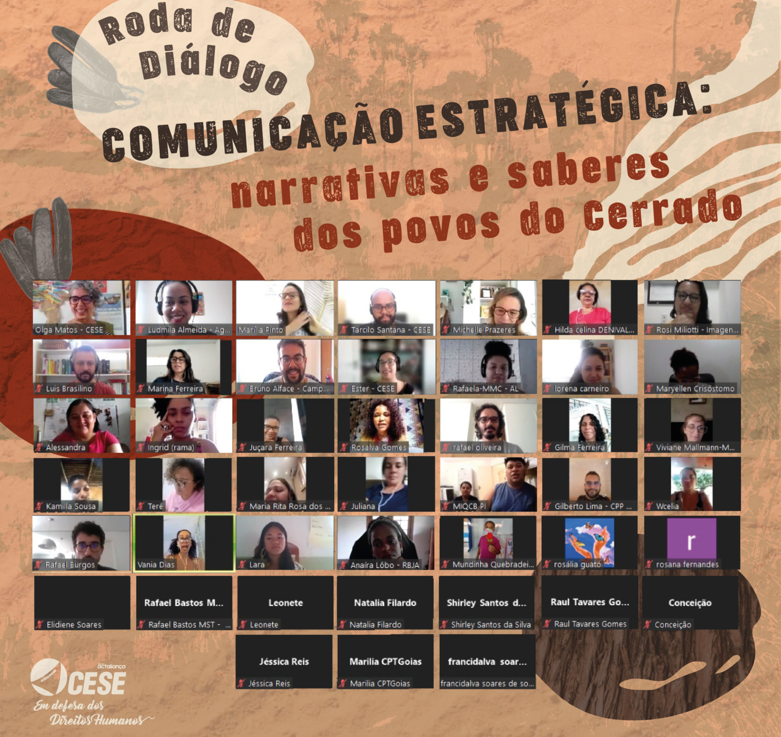 Diante desses desafios, a CESE realizou no último dia 29 de novembro, a “Roda de Conversa Virtual – Comunicação Estratégica: narrativas e saberes dos povos do Cerrado”. O encontro teve o objetivo de proporcionar a escuta e troca de saberes entre coletivos de comunicação, jornalistas da imprensa alternativa e organizações ecumênicas e populares, no âmbito da luta e defesa dos territórios.