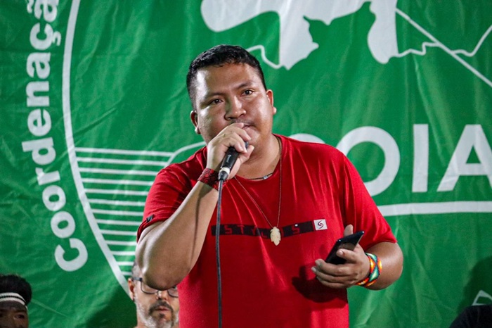 Presentes na mesa: Herton Mura, da Organização de Lideranças Indígenas do Careiro da Várzea (OLIMCV); Hulicio Moisés Kaxinawá, presidente da Organização dos Povos Indígenas Huni Kui do Alto do Rio Purus (OPIAHRP);Valtin Tye Parakana da Associação Indígena Tato’a; Giofan Macuxi, do Conselho Indígena de Roraima (CIR); Vinícius Benites Alves, assessor de projetos e formação da CESE; e Thayna Ferraz, CR da Fundação Nacional dos Povos Indígenas (Funai), da TI Alto Rio Purus.