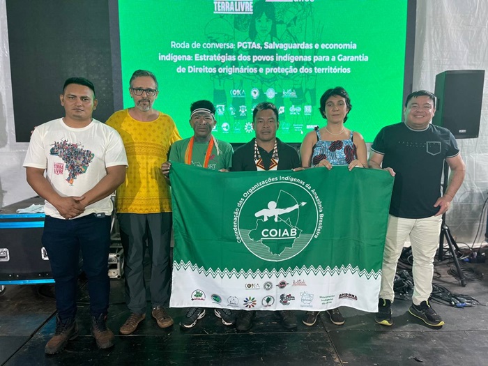 Representantes de organizações indígenas, CESE, Coiab e a Funai participaram de uma mesa sobre “PGTAs, Salvaguardas e Economia Indígena: Estratégias dos povos indígenas para a garantia de direitos originários e proteção dos territórios”, realizada na quarta-feira (9 de abril), na tenda da Coiab, durante o ATL, em Brasília.