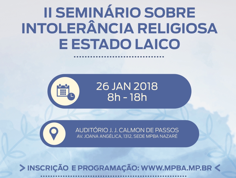 A CESE esteve presente no II Seminário Sobre Intolerância Religiosa e Estado Laico, realizado pelo Grupo de Atuação Especial de Proteção dos Direitos Humanos e de Combate à Discriminação do Ministério Público do Estado da Bahia. O evento foi realizado no dia 26 de janeiro, das 08h às 18h, no auditório do MPBA, no bairro de Nazaré. O evento contou também com o um diálogo interreligioso com diversas lideranças, como a Mãe Jaciara, do Terreiro Ilê Axé Abassá de Ogum, filha de Mãe Gilda. O seminário celebra o Dia Nacional de Combate à Intolerância Religiosa, comemorado no dia 21 de janeiro em homenagem à sacerdotisa candomblecista Mãe Gilda, Ialorixá cuja morte se deu em razão de ódio religioso.