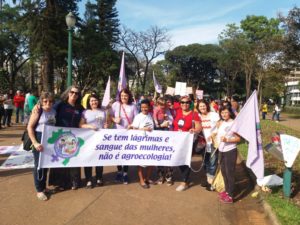 Mulheres pela Agroecologia – Beth, do GT de mulheres da ANA, destaca o papel das mulheres na construção da agroecologia. “Estamos construindo estratégias para um Brasil com agroecologia, com alimentos mais saudáveis. Um dos maiores bloqueios para o crescimento da agroecologia é o machismo, porque as mulheres são a maioria que estão construindo agroecologia no campo, mas para conseguir esse reconhecimento tem que lutar e muito, tem que lutar uma vida inteira. O machismo é o veneno da vida das mulheres. Cada mulher que tá aqui sabe a luta que é para conseguir fortalecer seu protagonismo na agroecologia”. Beth denuncia a retirada da presidenta Dilma da presidência. “Tiraram a Dilma sem irregularidade do seu mandato.  isso foi mais uma prova de que nosso maior inimigo é o machismo. Esse governo golpista não tem compromisso nem com a agroecologia nem com as mulheres”, denuncia Beth.