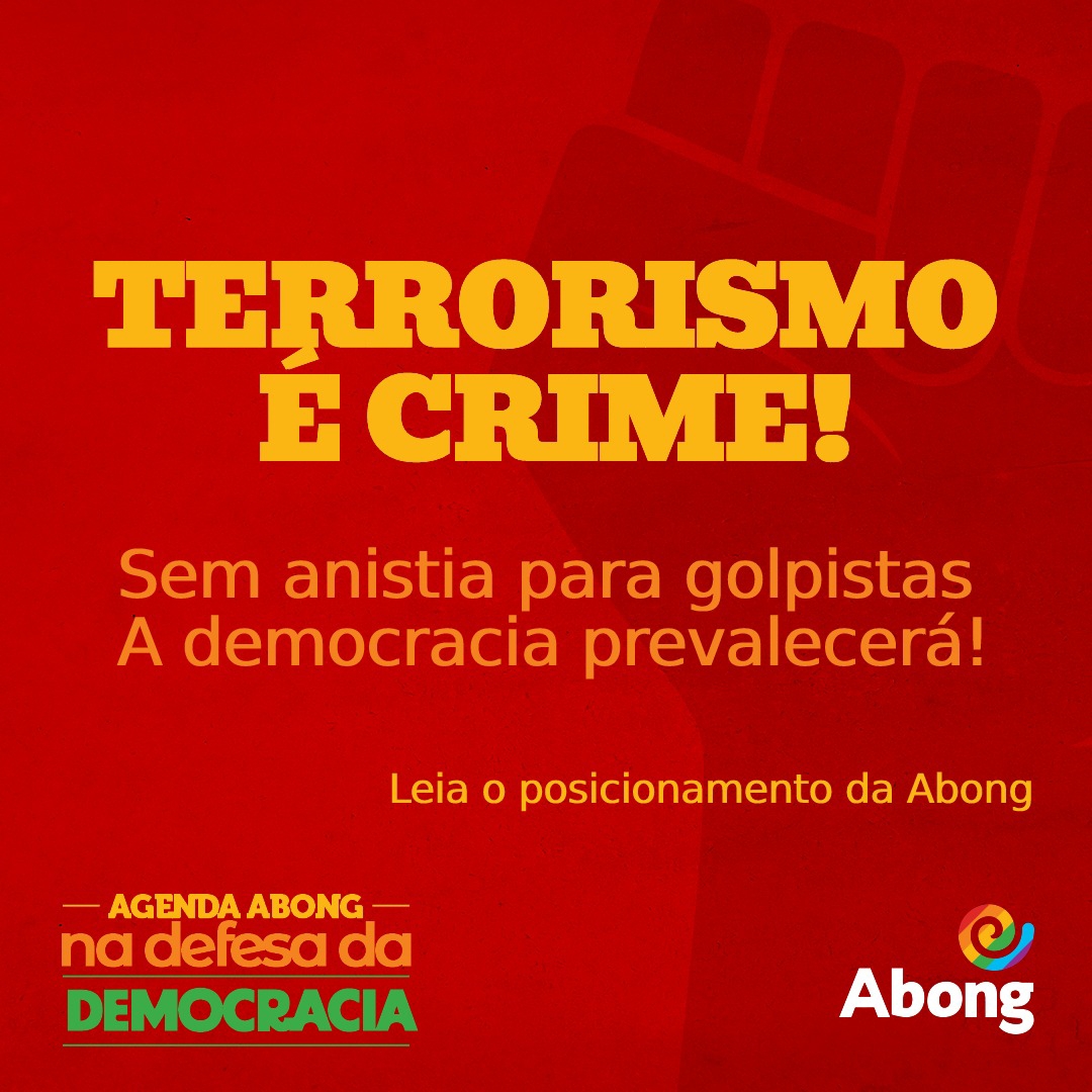 A Associação Brasileira de Organizações Não Governamentais (Abong), enquanto entidade representativa de amplo campo da sociedade civil brasileira, manifesta imensa preocupação com a democracia brasileira e exige:
