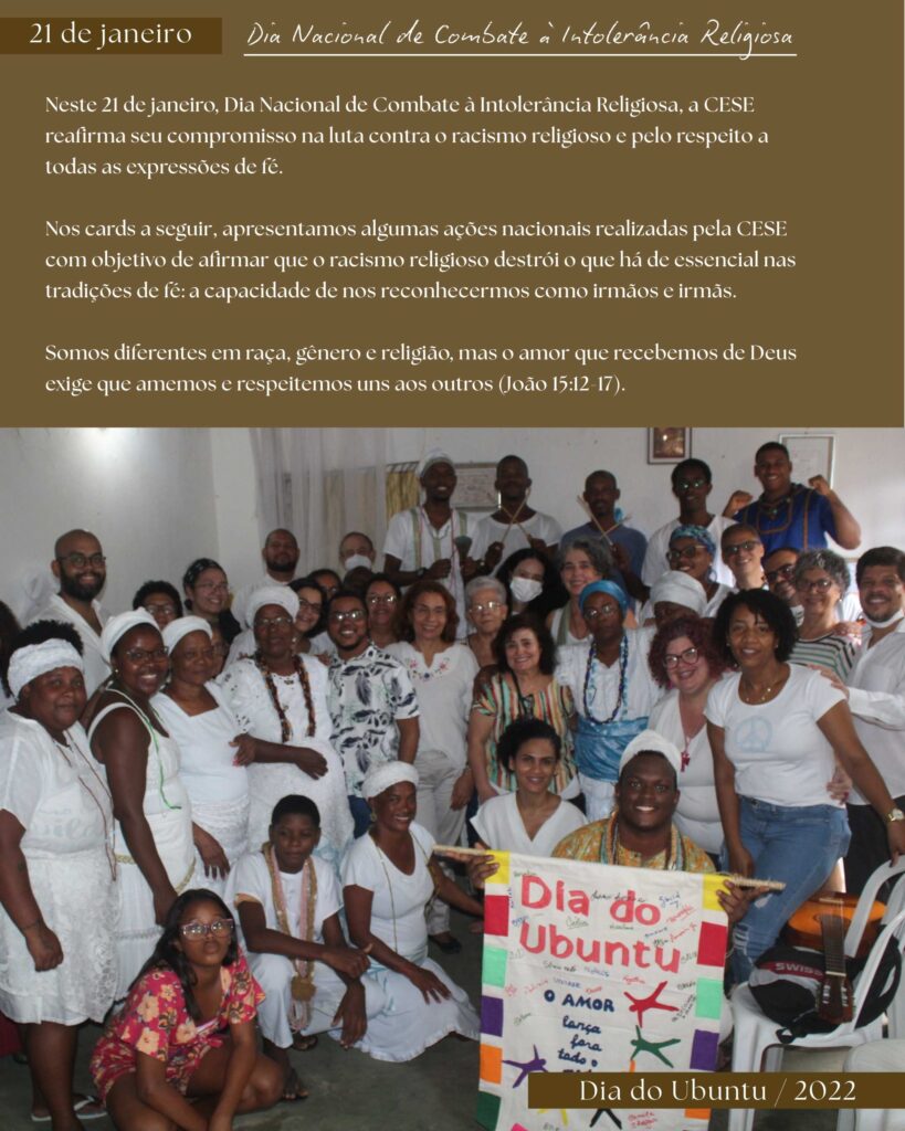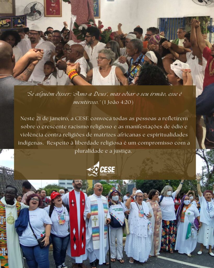 ✝️Como organização ecumênica, reafirmamos nosso compromisso na luta contra o racismo religioso, pelo diálogo inter-religioso e pelo respeito a todas as expressões de fé, incluindo as pessoas que não professam nenhum credo.