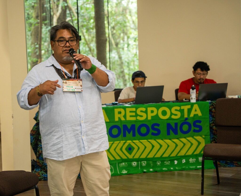Para Toya Manchineri, o Brasil atravessa um período que desafia a própria existência das instituições e alerta para uma realidade de “guerra política” onde leis, como a do marco temporal, são editadas e reeditadas pelo Congresso Nacional para relativizar direitos inconstitucionais. Para ele, o papel da comunicação indígena nesse contexto é fundamental para combater as mentiras que circulam nos territórios: “Os/as comunicadores/as, com celulares e câmeras nas mãos, podem registrar as violações de direitos que acontecem nos territórios para rebater as mentiras contadas pela grande mídia.’’