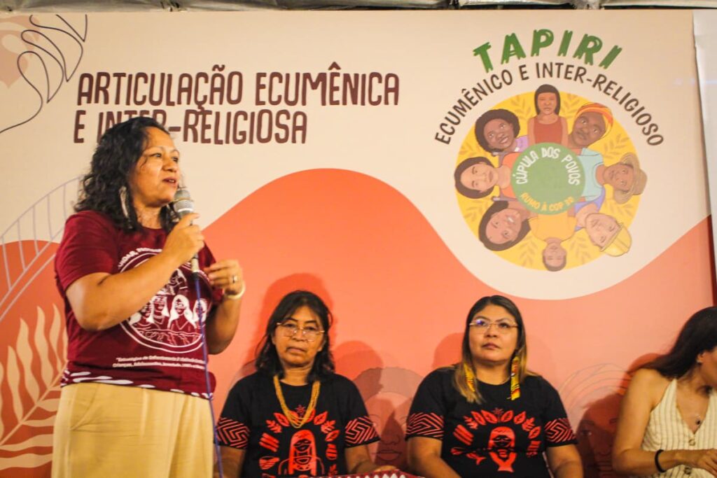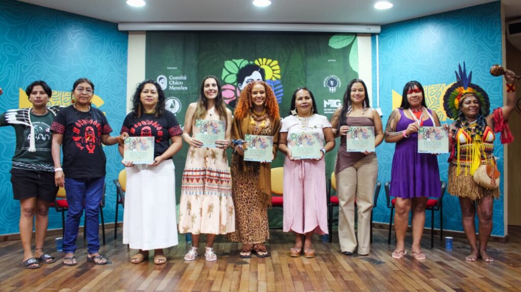 No Espaço Chico Mendes, o diálogo contou com Mayla Karajá (comunicadora), Cleocimara Piratapuya, Anna Terra Yawalapiti e Socorro Baniwa, em uma roda marcada pela troca de experiências e perspectivas das mulheres indígenas.