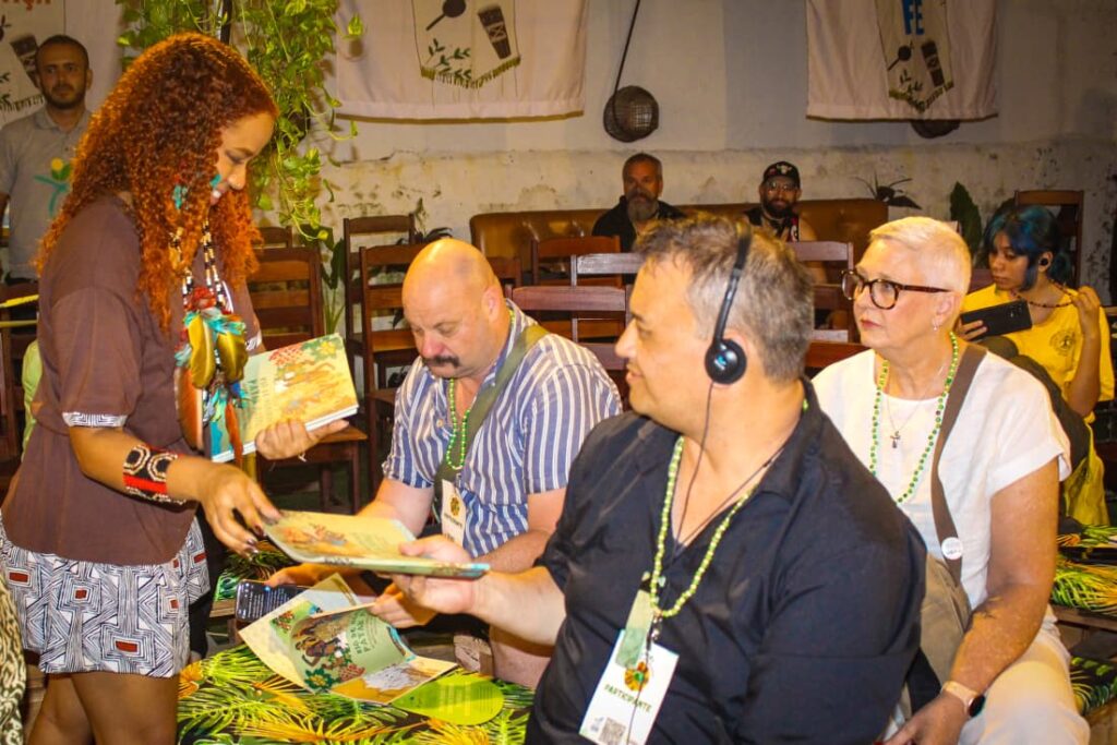 Já no Espaço Chico Mendes, o diálogo se voltou para as pautas de autonomia, defesa da floresta e justiça climática, conectando a experiência das coautoras às lutas mais amplas dos povos indígenas no Brasil.