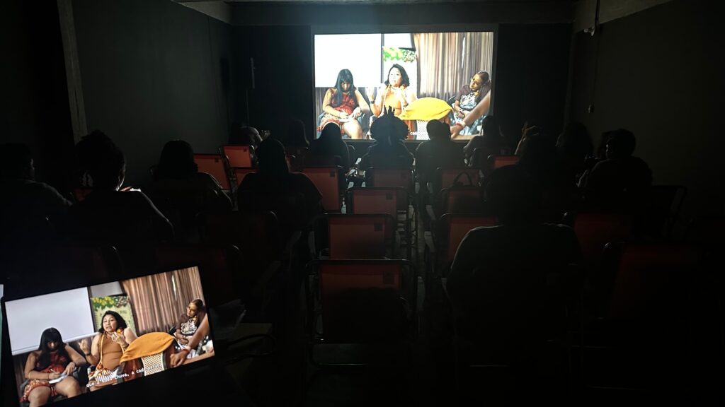 Na Casa Maraká, a noite foi marcada por falas potentes das mulheres indígenas que fizeram parte da história do Patak Maymu e que compartilharam como o projeto fortaleceu suas trajetórias, seus territórios e sua presença em espaços de decisão e na comunicação.