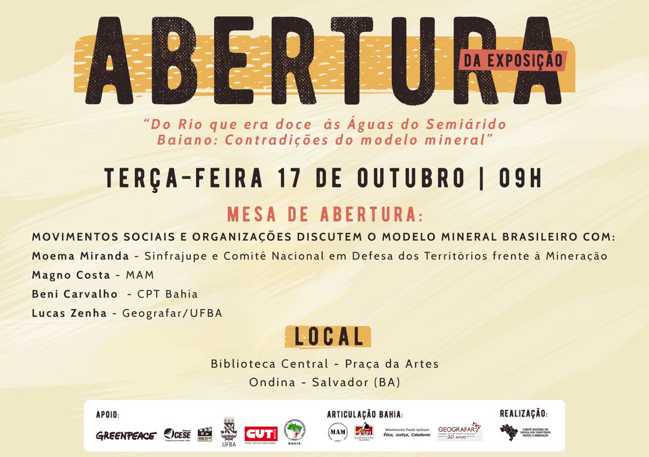 São Paulo foi a primeira cidade a abrigar a exposição, organizada pelo Comitê Nacional em Defesa dos Territórios frente à Mineração. Passou por Belém (PA), Açailândia e São Luís (MA), Caetitè e chega à Salvador. Assim, o debate ganha força e amplitude, associando o desastre em Mariana aos efeitos da mineração também na Bahia.